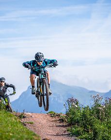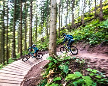 Vom Hahnenkamm führt der Flowtrail über einfachere Schlüsselstellen und verspielte Elemente hinab ins Tal.
