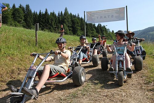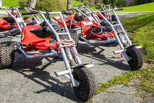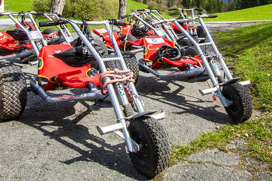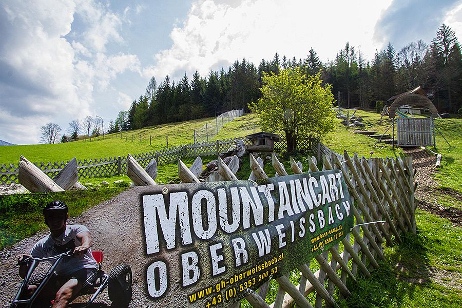 Erleben Sie die Mountaincart-Bahn beim Alpengasthof Oberweissbach. Die Mountaincart-Strecke in Waidring in Tirol ist 2,1 km lang und 3 m breit. Ab 10 Uhr stehen Ihnen Mountaincarts in 4 verschiedenen Größen zur Verfügung. Nach einer schnellen Abfahrt mit den Funsport-Geräten befördert Sie unser „Mountain-Taxi“ wieder an den Start zurück. Helme und Schutzbekleidung sind inkludiert (Helmpflicht!). Für Unfälle wird nicht gehaftet.