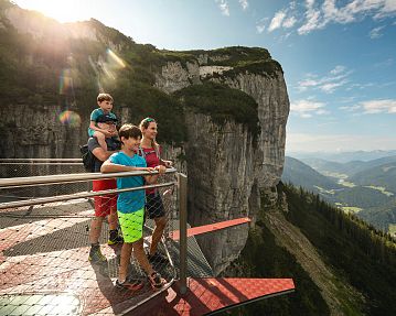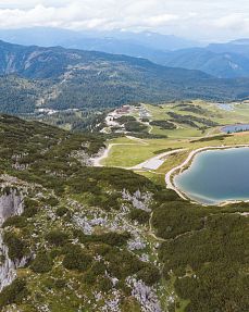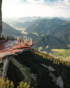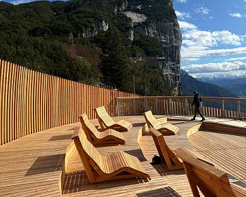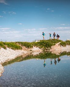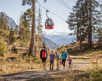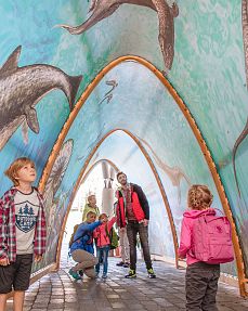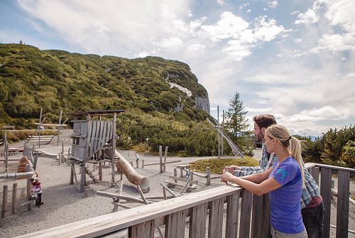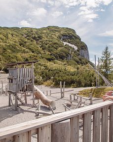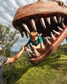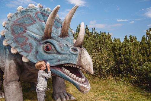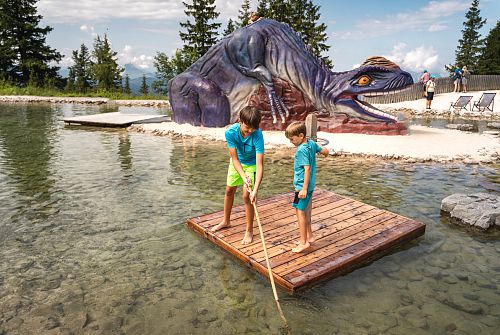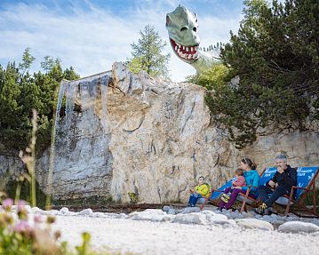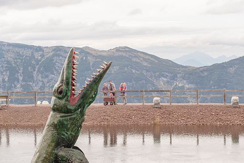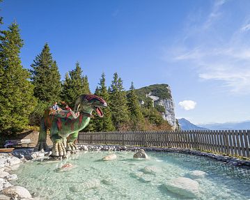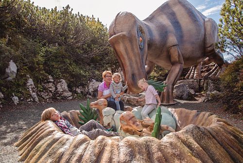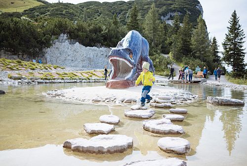 The Triassic Park on the Steinplatte is an unforgettable experience for young and old alike to learn all there is to know about the Triassic period and the dinosaurs. While the children dig for fossils on Triassic Beach, go on raft trips or put their skills and courage to the test on the low ropes course, the adults can relax on the highest sandy beach in the Alps. The spectacular viewing platform and the new panorama shell offer relaxation and a marvellous views. The Triassic water features will delight explorers of all ages. The ride on the underwater gondola, the indoor Triassic Centre with the explorer camp and the stalactite cave are also ideal for bad weather.