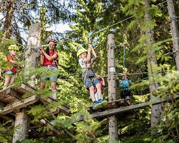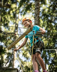 The biggest climbing forest in the Kitzbühel Alps with a new Orange course (for those 110 cm and taller), specifically is aimed at beginners, families, and school groups. There are now a total of 11 courses, 101 stations, all equipped with the safest Safetyline System currently available, and we offer different difficulty levels - an experience for all ages.